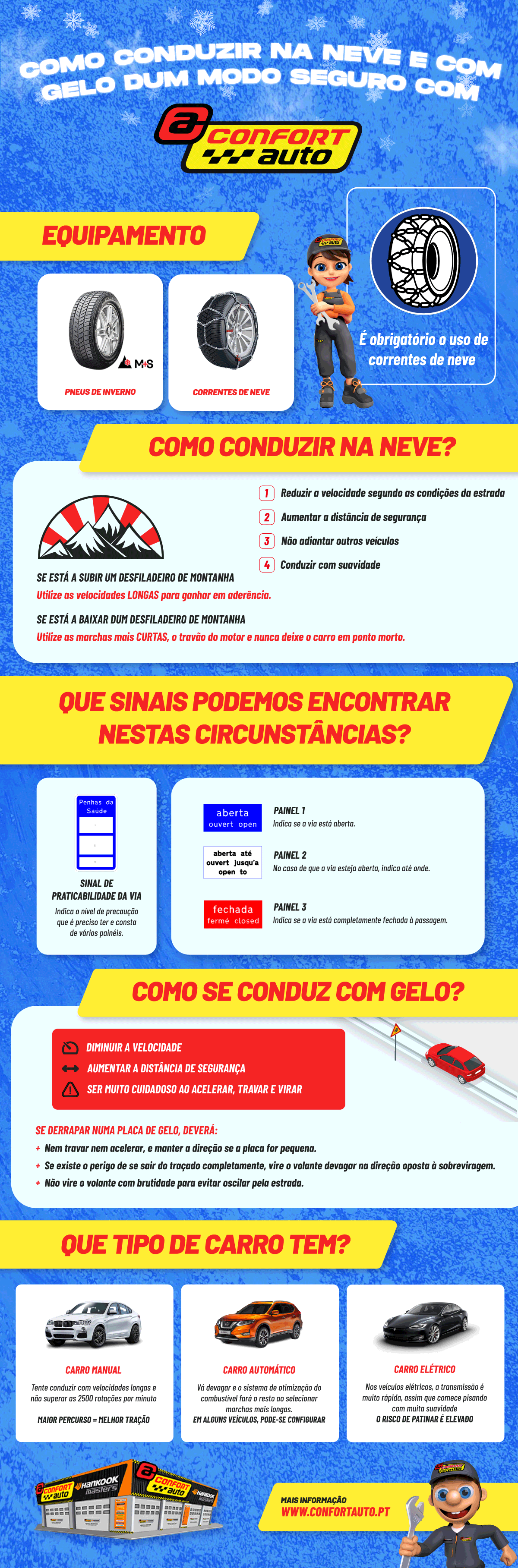 Agora já pode conduzir na neve e com gelo graças à Confortauto. Desfrute das melhores condições de segurança através dos melhores materiais e das dicas mais acertadas. E não esqueça que, se ao final decidir comprar alguns dos melhores pneus de inverno, pode contactar connosco e ajudar-lhe-mos com tudo!